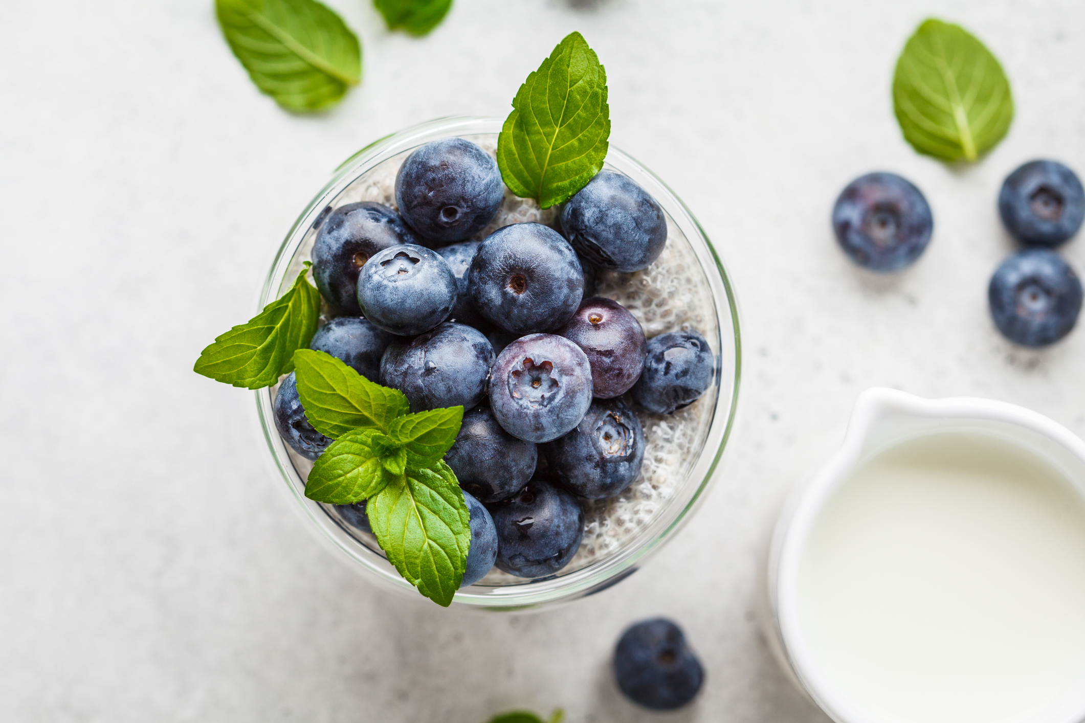 3. Once pudding is done chilling, top each jar with half of the blueberries and enjoy.